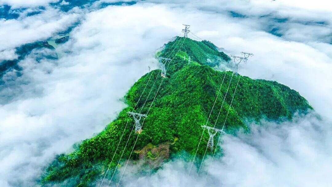 云端之上的浙北-福州1000千伏特高压交流输变电工程线路。通讯员 季维娜 摄