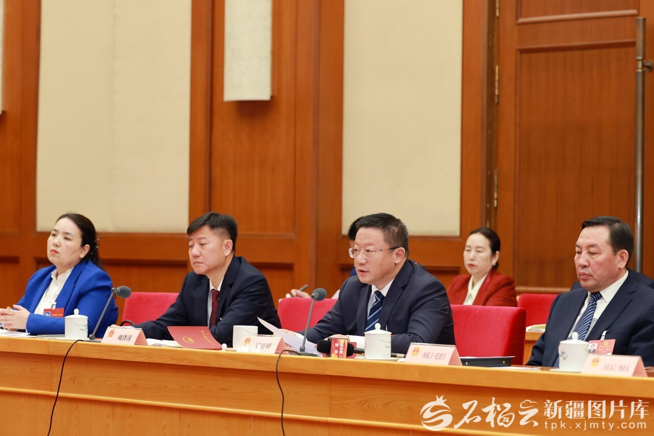 郑育峰代表(前右二)围绕高标准种业基地建设等内容发言(资料图)。天山网-新疆日报记者 崔志坚摄