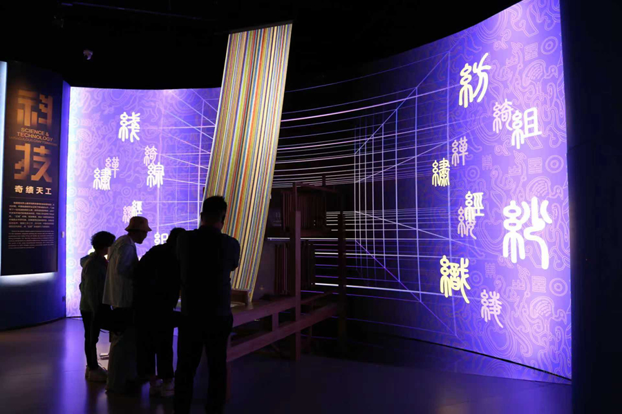在“发现·五星锦”沉浸交互剧场,车队与驼铃声在月色下交织,五彩丝线串联起跨越时空的技艺与文明;而在“数字织机”前,观众通过操作屏幕上的拉杆与梭子,亲手将“虚拟丝线”织成绚丽的“数字五星锦”……