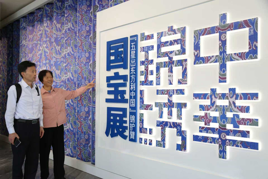 “五星出东方利中国”锦护臂。新华社记者 徐宏岩 摄