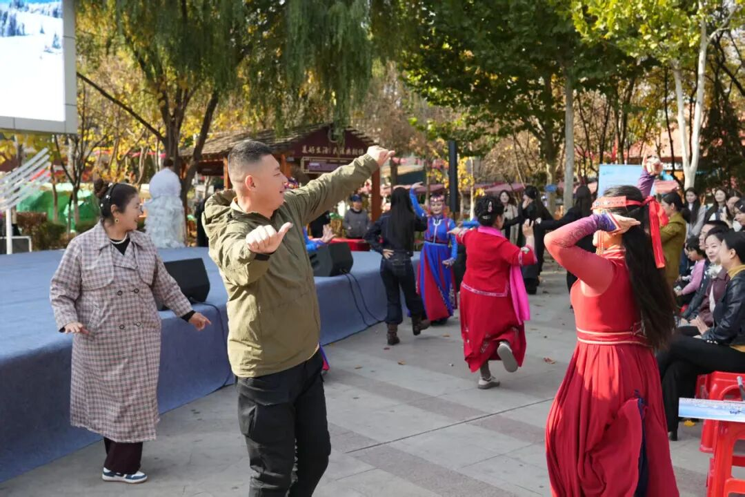 特色歌舞表演将现场氛围推向高潮。据了解,此次巡回推介活动伊宁站歌舞表演于11月1日至2日上午,在伊宁市六星街和伊犁老城文化旅游区接连上演三场。现场还设置了舞蹈互动环节,舞蹈演员邀请到场观众一同体验麦西来甫、萨吾尔登、黑走马等舞蹈。