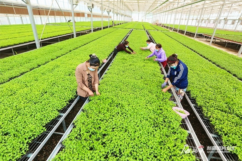 库车市牙哈镇智能育苗基地里辣椒苗长势正旺。尼亚孜·热合曼摄